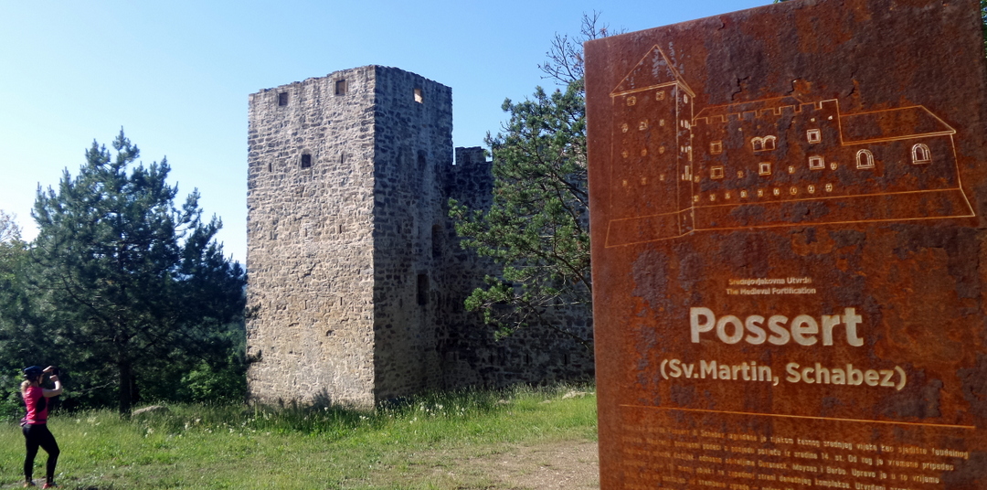 Pojedini zidovi palasa i kula utvrde sačuvani su i danas do izvorne visine. Kula je visoka 16 metara te je imala čak šest etaža, a zgrada palasa je uz podrumsku prostoriju imala još tri etaže. Što se tiče povijesti, ova se pitoreskna utvrda poistovjećivala u spisima s utvrdom Sv. Martin koja je prvi put spomenuta u 11. stoljeću. Bila je u vlasništvu akvilejskog patrijarha, obitelji Guteneck i Moyses, a 1529. godine došla je u posjed obitelji Barbo koja ju je obnovila. Tada se utvrda počela nazivati i Shabez.